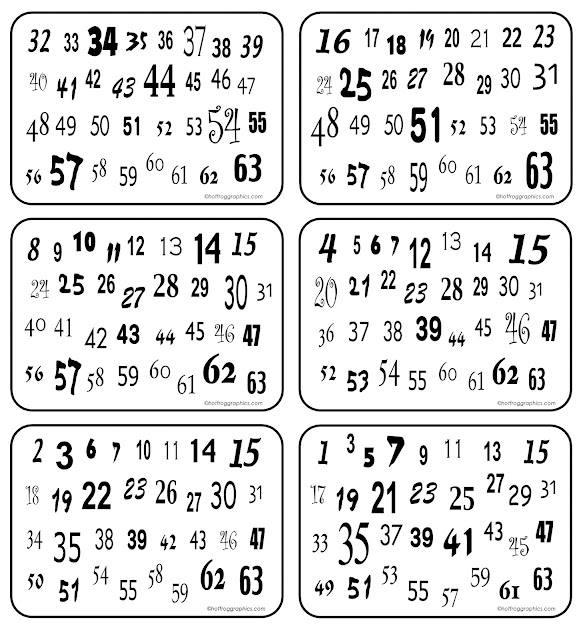 Ask someone to think of a number between 1 and 63, and to keep that number secret. Tell them to concentrate hard on their number as you hand them the 6 magic number cards.
